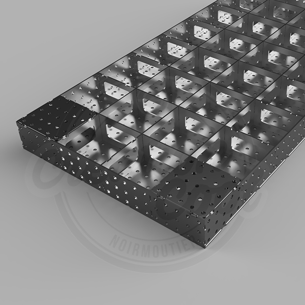 - grande flexibilité d’utilisation avec 1280 points de fixations possibles : 800 perçages sur le plateau et 480 sur le pourtour